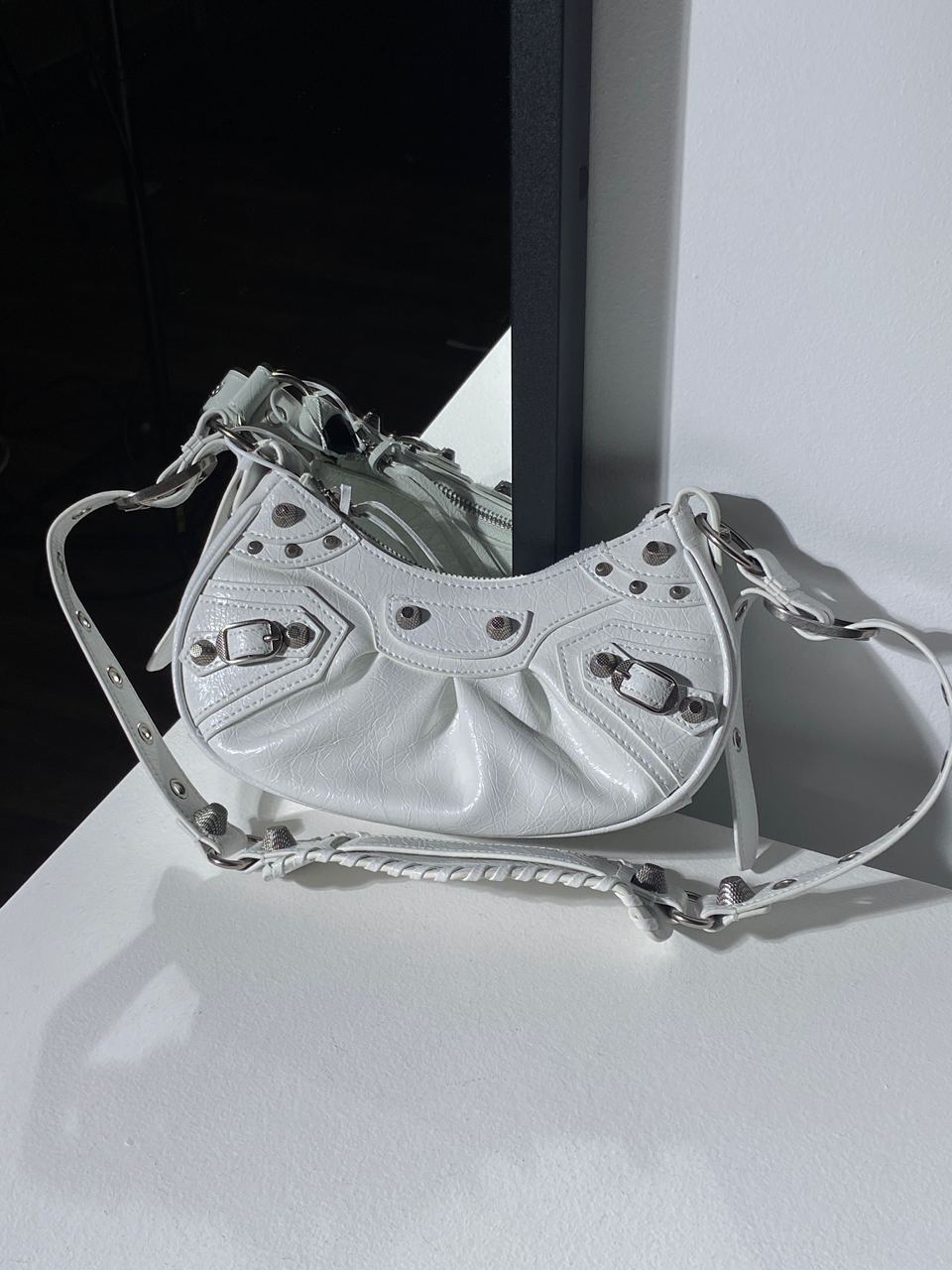 Розмір 25х12х7смСумка виконана з натуральної шкіри з металевими наклепками.Всередині одне відділення, є невеличка кишеня.Підкладка у сумки з щільного та якісного текстилю.Фурнітура металева, брендована.Ремінець має великий діапазон регулювання (багато отворів).Також є дзеркальце у вигляді сердця.Комплектується в пильовику, у брендованій коробці на магнітах з стрічками, також в комплекті є подарункові стрічки, буклетики.