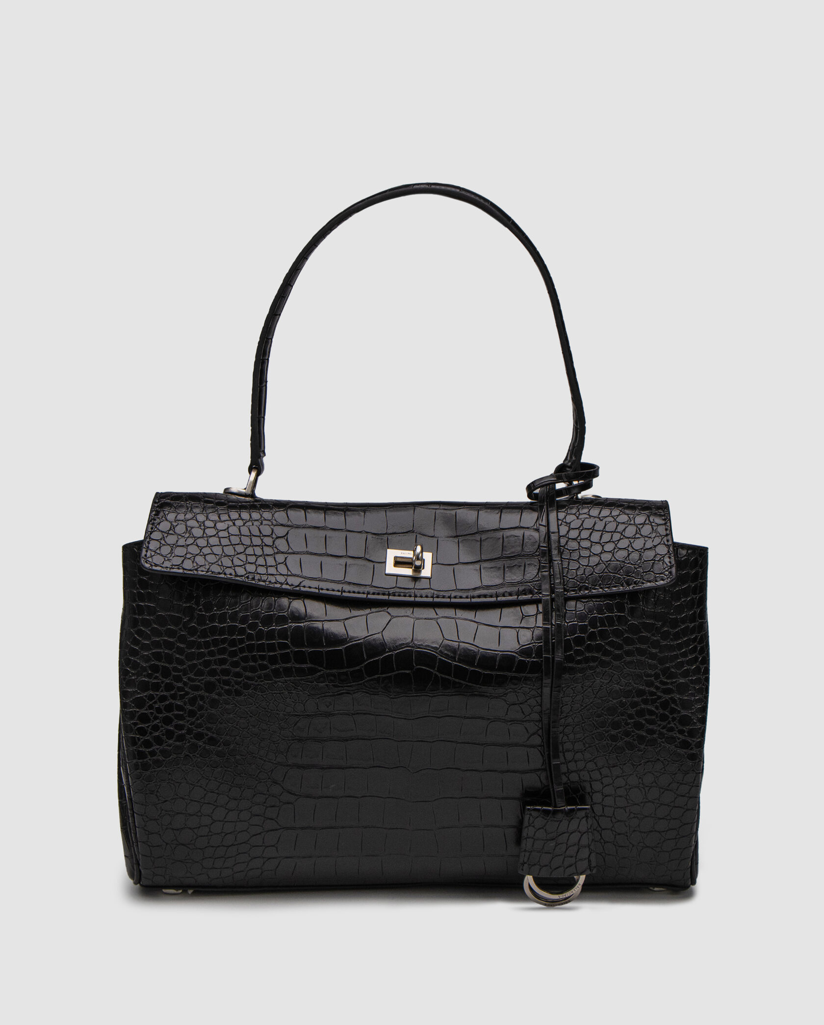 Розмір 35х25х10смСумка виконана з текстурної кроко шкіри.Всередині два відділення, також є кишеня на застібці.Більш вмісткою сумку можна зробити відстібнувши заклепки по боках.Підкладка з гладкої шкіри.Фурнітура металева, брендована.Зачиняється на фірмовому механізмі.Ремінець для носіння через плече виконаний зі шкіри, фіксованої довжини, на карабінах.Комплектується в брендовій коробці на магнітах та пильовику, є буклети.