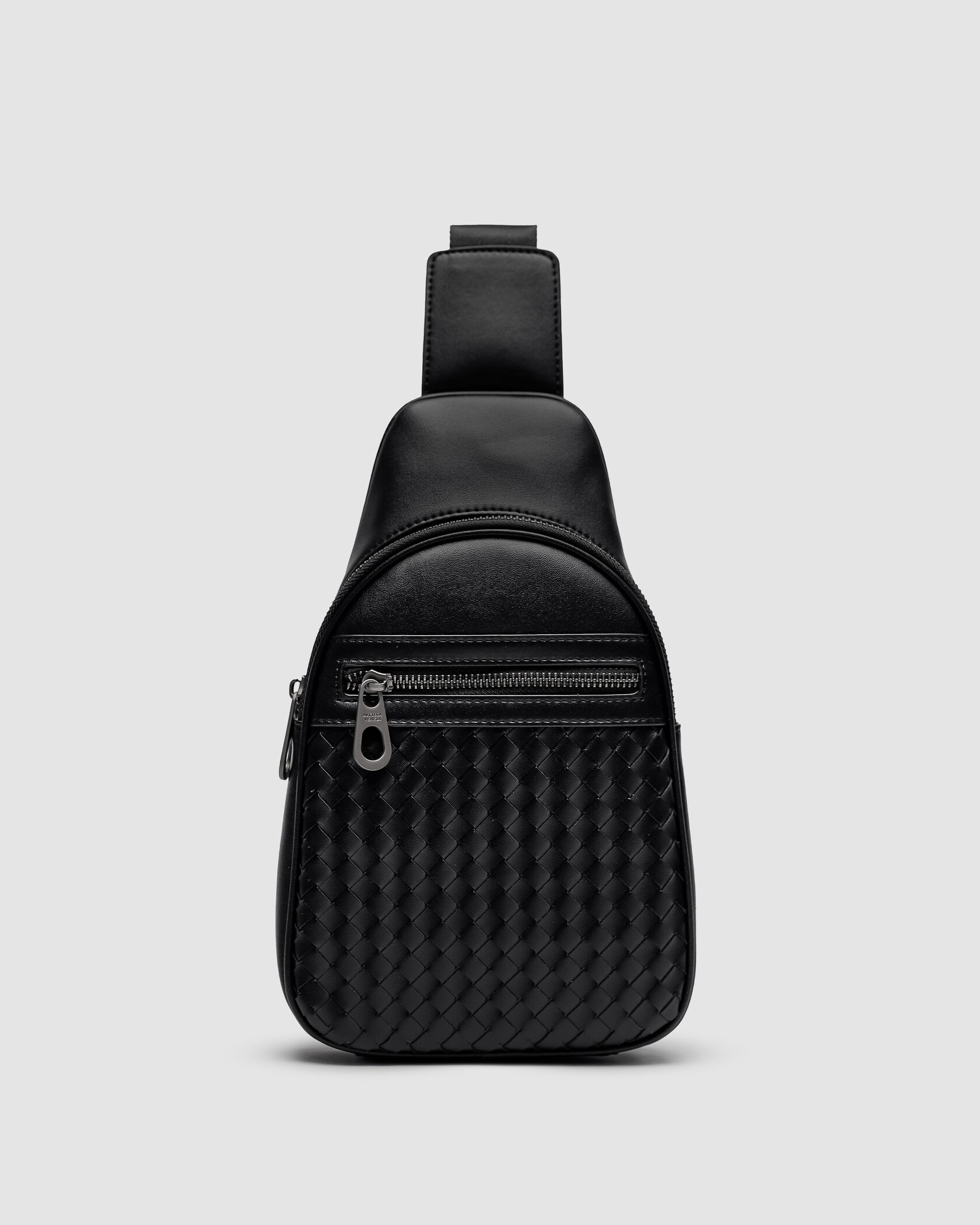 Розмір 17.5x30x4.5смСумка виготовлена з гладкої та плетеної шкіри.Всередині одне відділення, також є додаткові кишені одна з яких на застібці.Підкладка з оксамитового текстилю.Фурнітура металева, брендована.Ремінець текстильний, регулюється за довжиною та може перестібатись на іншу сторону.