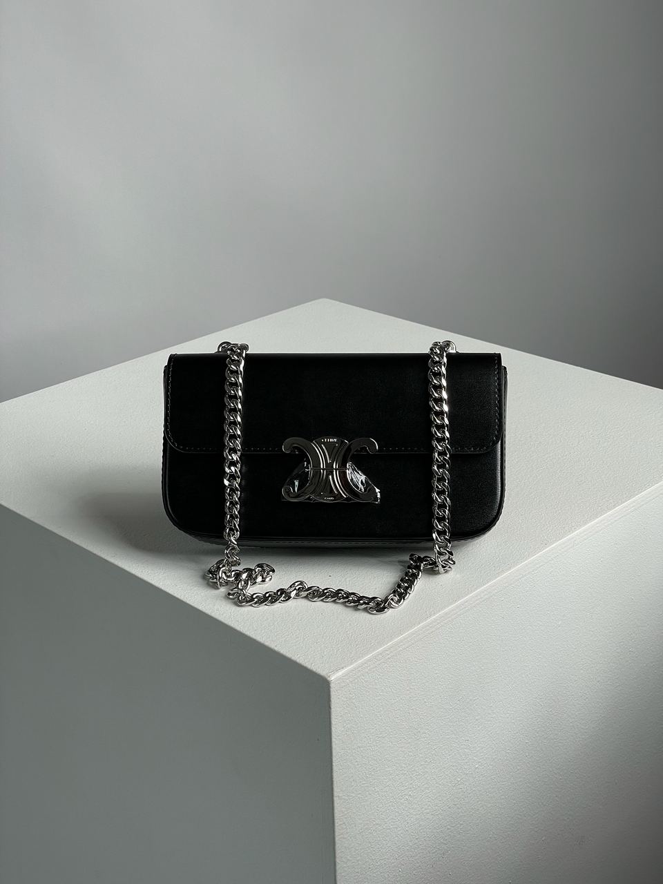Розмір 20.5x11.5x4.5смСумка виготовлена з гладкої шкіри, вона не матова, може трохи відблискувати.Всередині одне відділення, також є невеличка кишеня.Підкладка у сумки з чорної шкіри, з брендовим тисненням.Фурнітура якісна металева, брендована.Ремінець для носіння через плече з металевого сріблястого ланцюжка, фіксованої довжини.Комплектується у брендованій коробці на магнітах та пильовику, також є буклетик.