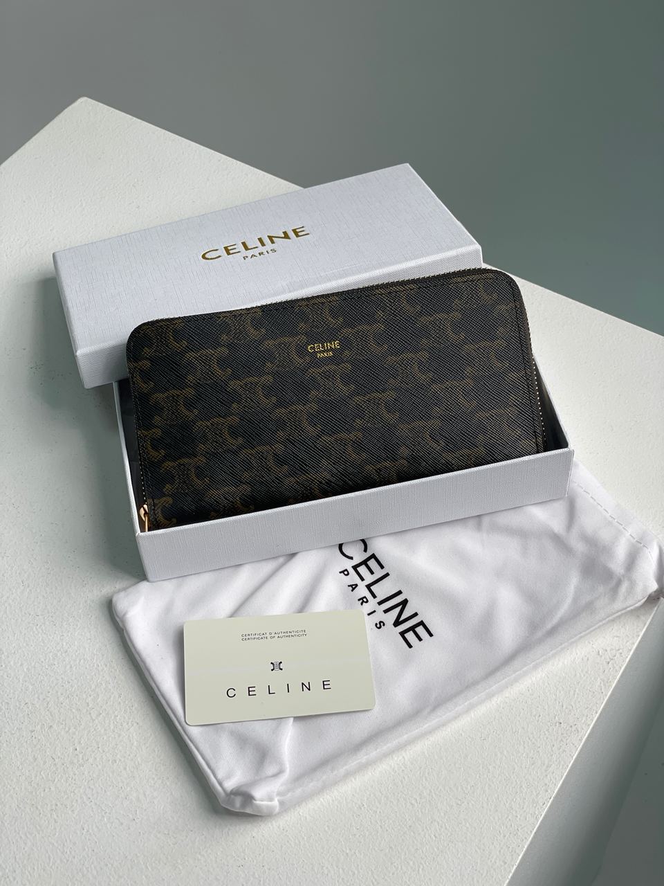 Celine Large Zipped Wallet in Triomphe Canvas Brown