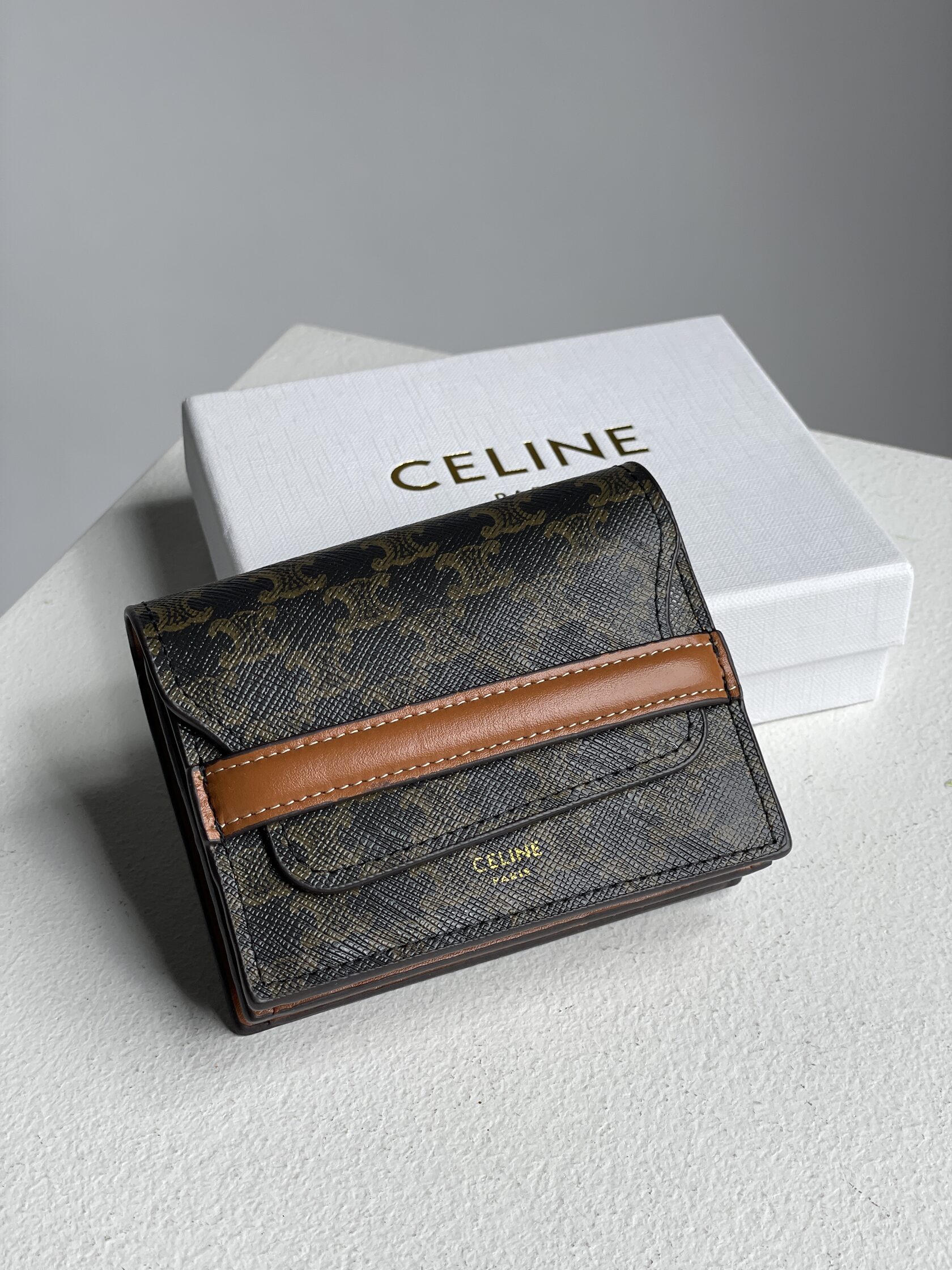 Розмір 10.5x8.5x3смГаманець виконаний з шкіри в фірмовій канві.Всередині два відділення, також є 4 відділи для карток.Комплектується у брендову коробку та пильовик, також є пластикова картка бренду.