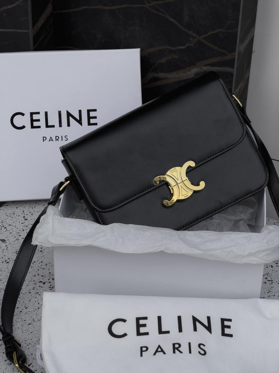 Celine Teen Triomphe Bag Black in Shiny Calfskin