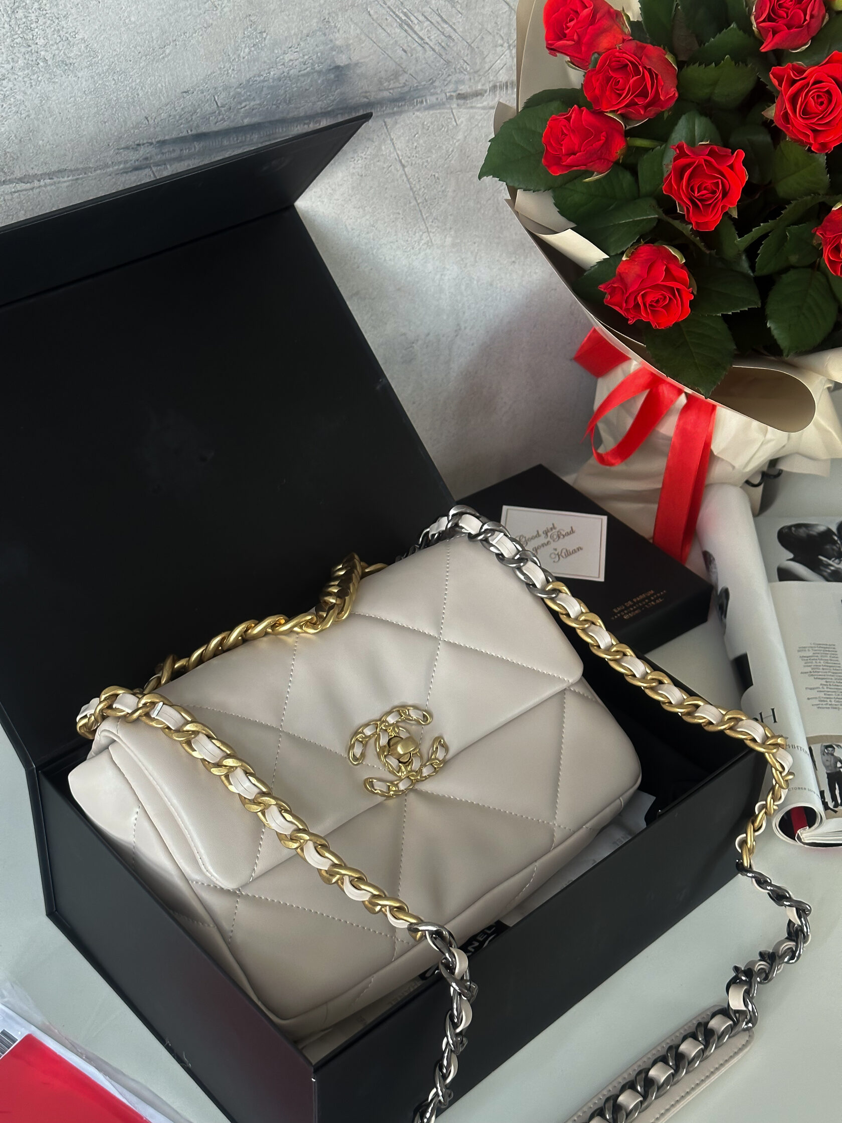 Chanel 19 Large Handbag White Cream/Gold