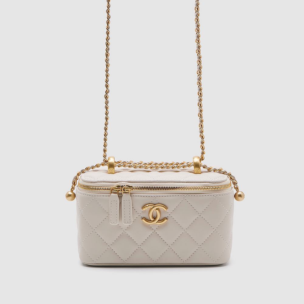Розмір 17х11х8смСумка виготовлена з гладкої шкіри, прострочена.Всередині одне невеличке відділення, є ще більш невеличка кишеня.Підкладка з щільного текстилю.Для носіння через плече є довгий тоненький ланцюжок з вплетеною шкірою (не відстібається, регулюється по довжині завдяки оригінальному механізму).Комплектується у фірмовій коробці на магнітах та пильовику, є буклети, подарункова стрічка, картка.