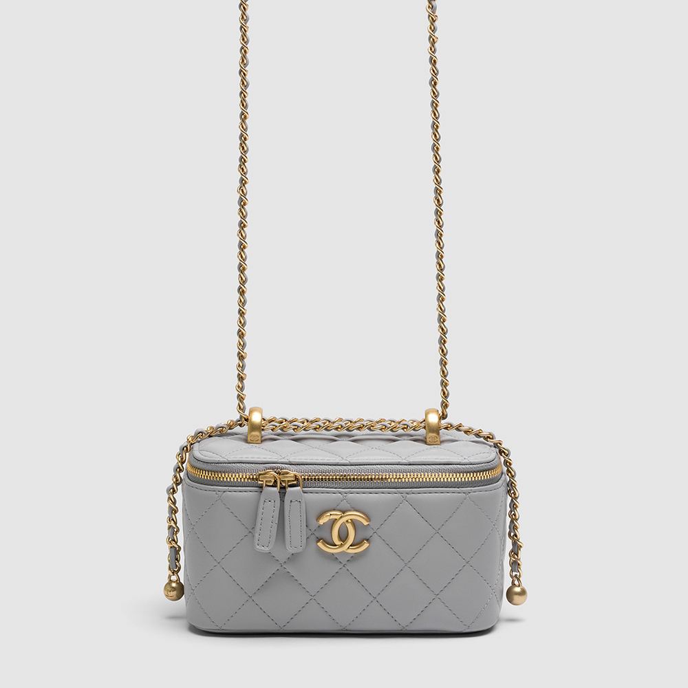 Розмір 17х10х8смСумка виготовлена з гладкої шкіри, прострочена.Всередині одне невеличке відділення, є ще більш невеличка кишеня для карток.Підкладка з щільного текстилю.Для носіння через плече є довгий тоненький ланцюжок з вплетеною шкірою (не відстібається, регулюється по довжині завдяки оригінальному механізму).Комплектується у фірмовій коробці на магнітах та пильовику.