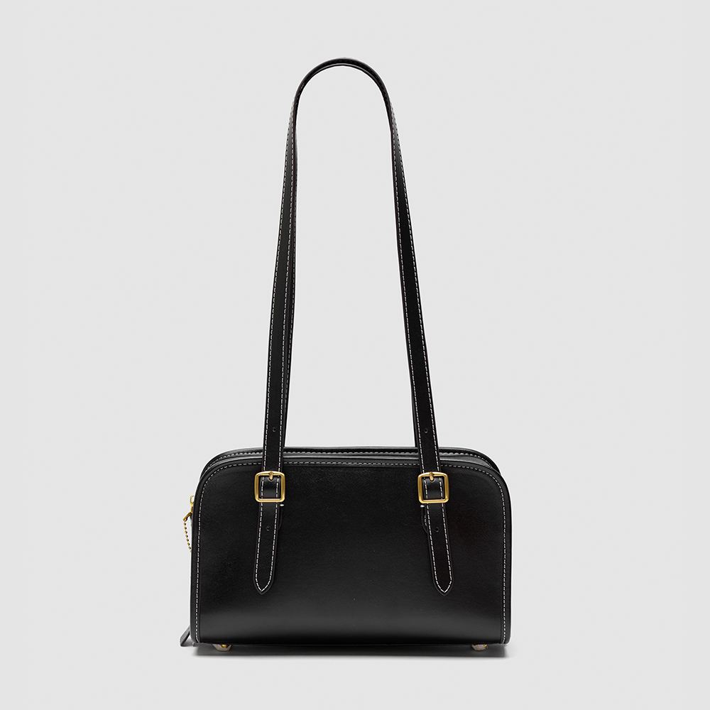 Розмір 26х15х9смСумка виготовлена з гладкої шкіри.Всередині одне велике відділення, також є кишеня на застібці.Підкладка з гладкої шкіри чорного кольору.Зачиняється відділення на застібці.Фурнітура металева, брендована.Ручки регулються за довжиною для носіння у руці, або через плече.Комплектується у фірмовій коробці та пильовику.