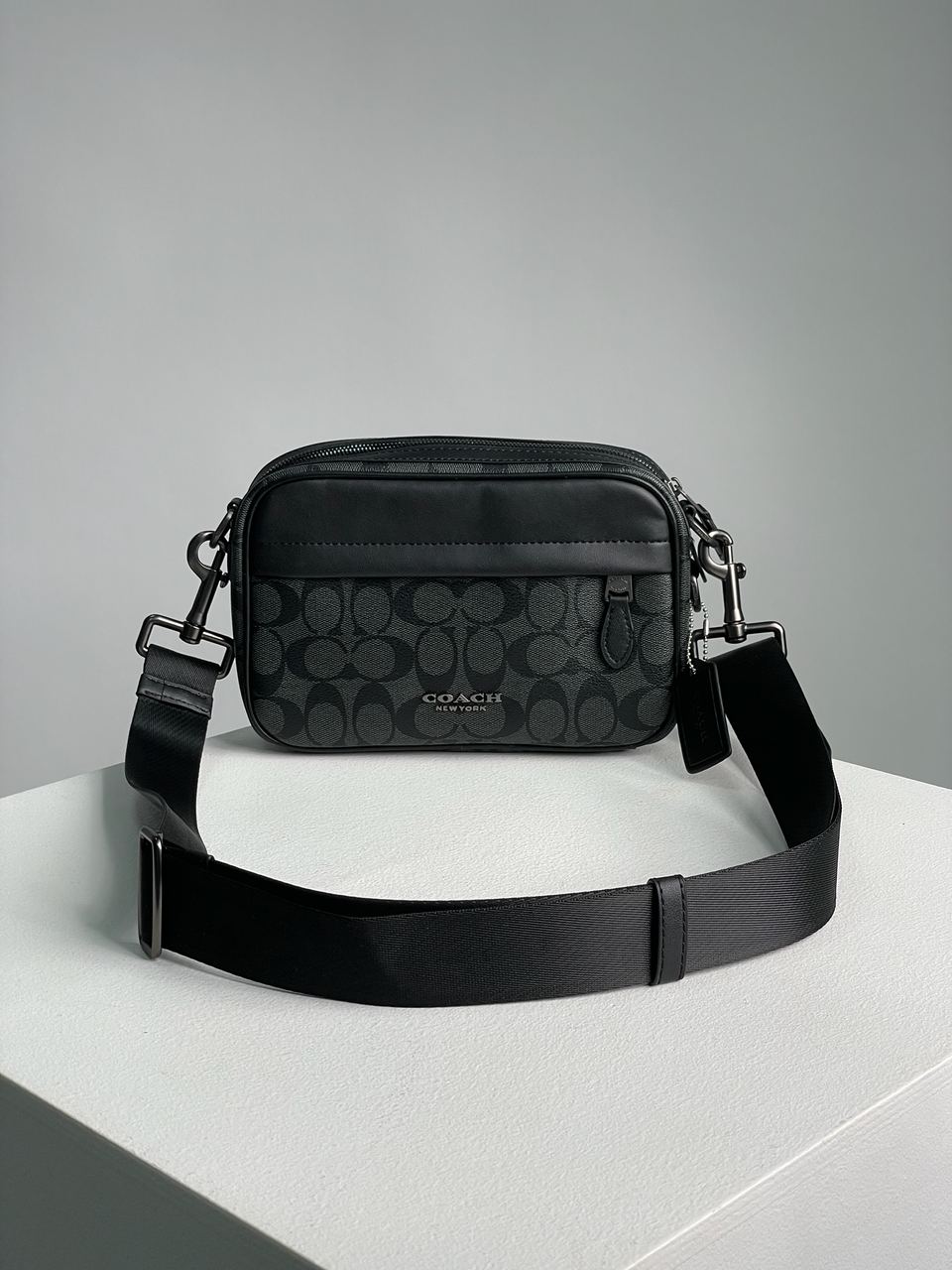 Розмір 22х15х6смСумка виконана з гладкої шкіри з фірмовою канвою.Всередині одне відділення, також є невеличка кишеня.Підкладка з щільного та якісного текстилю, є шкіряна нашивка з брендовим тисненням та бірка.Фурнітура дуже якісна, металева та брендована.Ремінець з щільного текстилю чорного кольору, має регулюєму довжину.Комплектується в брендову коробку та пильовик.