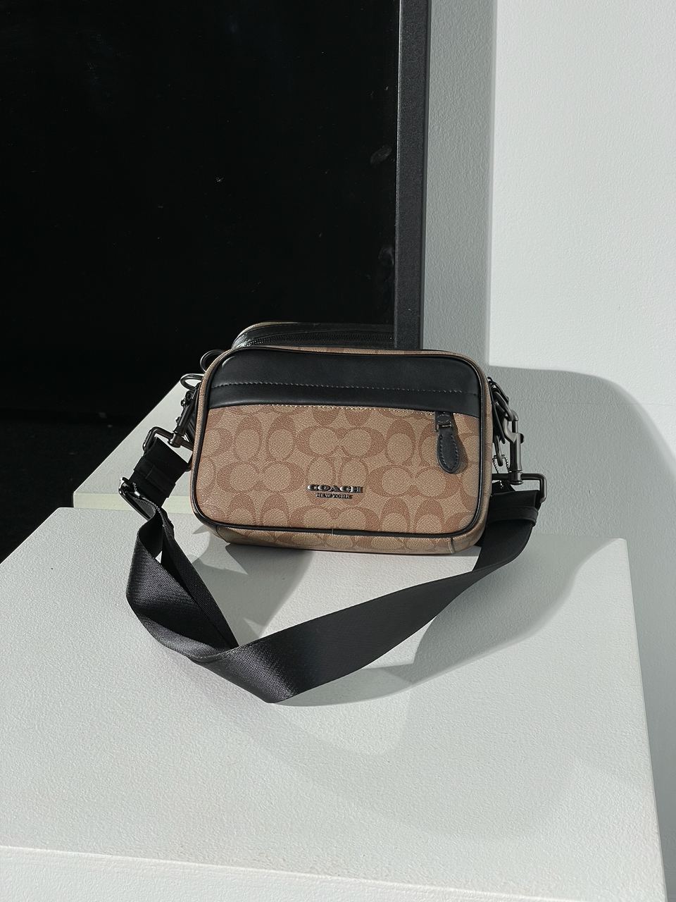 Розмір 22х15х6смСумка виконана з гладкої шкіри з фірмовою канвою.Всередині одне відділення, також є невеличка кишеня.Підкладка з щільного та якісного текстилю, є шкіряна нашивка з брендовим тисненням та бірка.Фурнітура дуже якісна, металева та брендована.Ремінець з щільного текстилю чорного кольору, має регулюєму довжину.Комплектується в брендову коробку та пильовик.