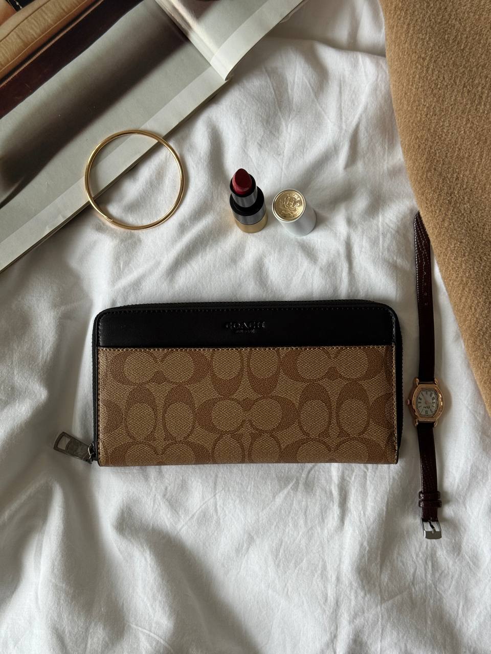 Coach Accordion Wallet In Signature Beige
