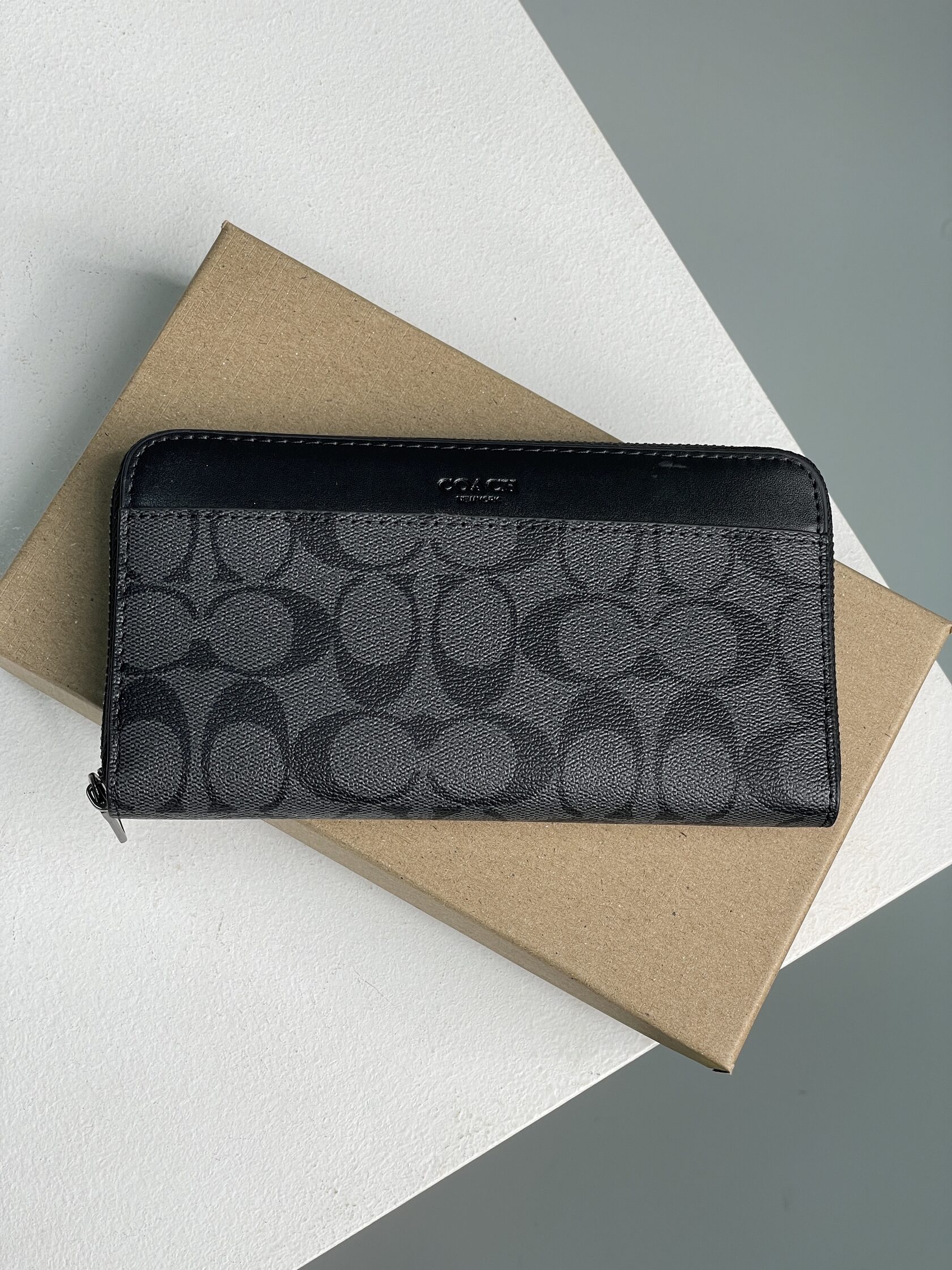 Coach Accordion Wallet In Signature Canvas Grey