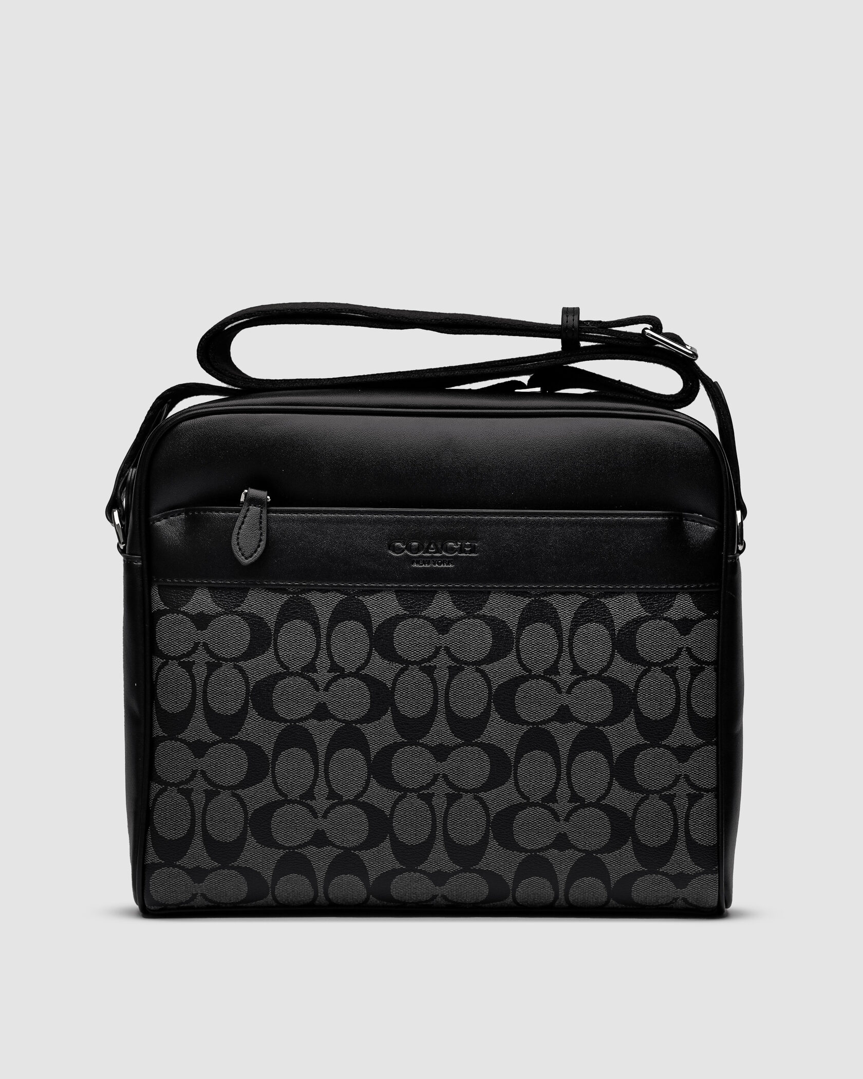 Розмір 28.5x25x6смСумка виготовлена з гладкої шкіри з фірмовою канвою.Всередині одне велике відділення, також є кишеня з шкіряною нашивкою.Підкладка з щільного текстилю.Фурнітура якісна, металева та брендована.Ремінець з щільного текстилю чорного кольору, має регулюєму довжину.