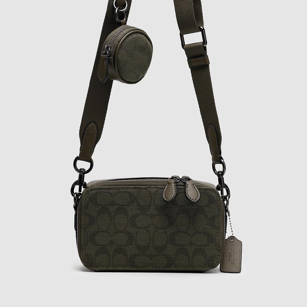 Розмір 19х11х5смСумка виготовлена з щільного текстилю з фірмовим дизайном.Всередині одне відділення, також є місце для карток.Зачиняється відділення на застібці.Фурнітура металева та брендована.Підкладка з щільного текстилю в колір сумки, також є нашивка з брендовим тисненням.Ремінець для носіння через плече - на карабінах, має регулюєму довжину.Також на ремінці є додатковий відділ для дрібниць круглої форми.Комплектується в брендову коробку на магнітах та пильовику.