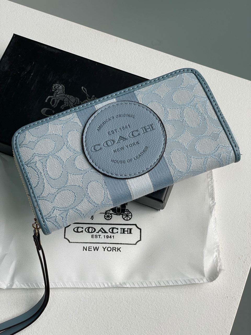Coach Dempsey Large Wallet In Signature Jacquard Blue