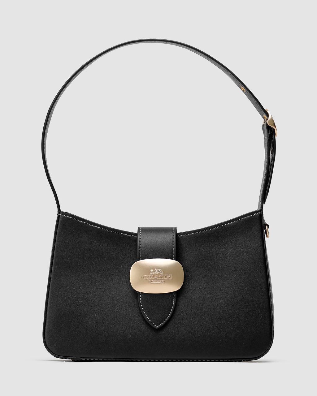 Розмір 25х16х7смСумка виготовлена з гладкої шкіри з білою прострочкою.Всередині одне відділення, також є кишеня на застібці.Підкладка з приємного на дотик оксамитового текстилю.Зачиняється сумка на магніті-клапані.Фурнітура металева та брендована.Ручка має невеличкий діапазон регулювання по довжині.Комплектується в брендовій коробці на магнітах та пильовик.
