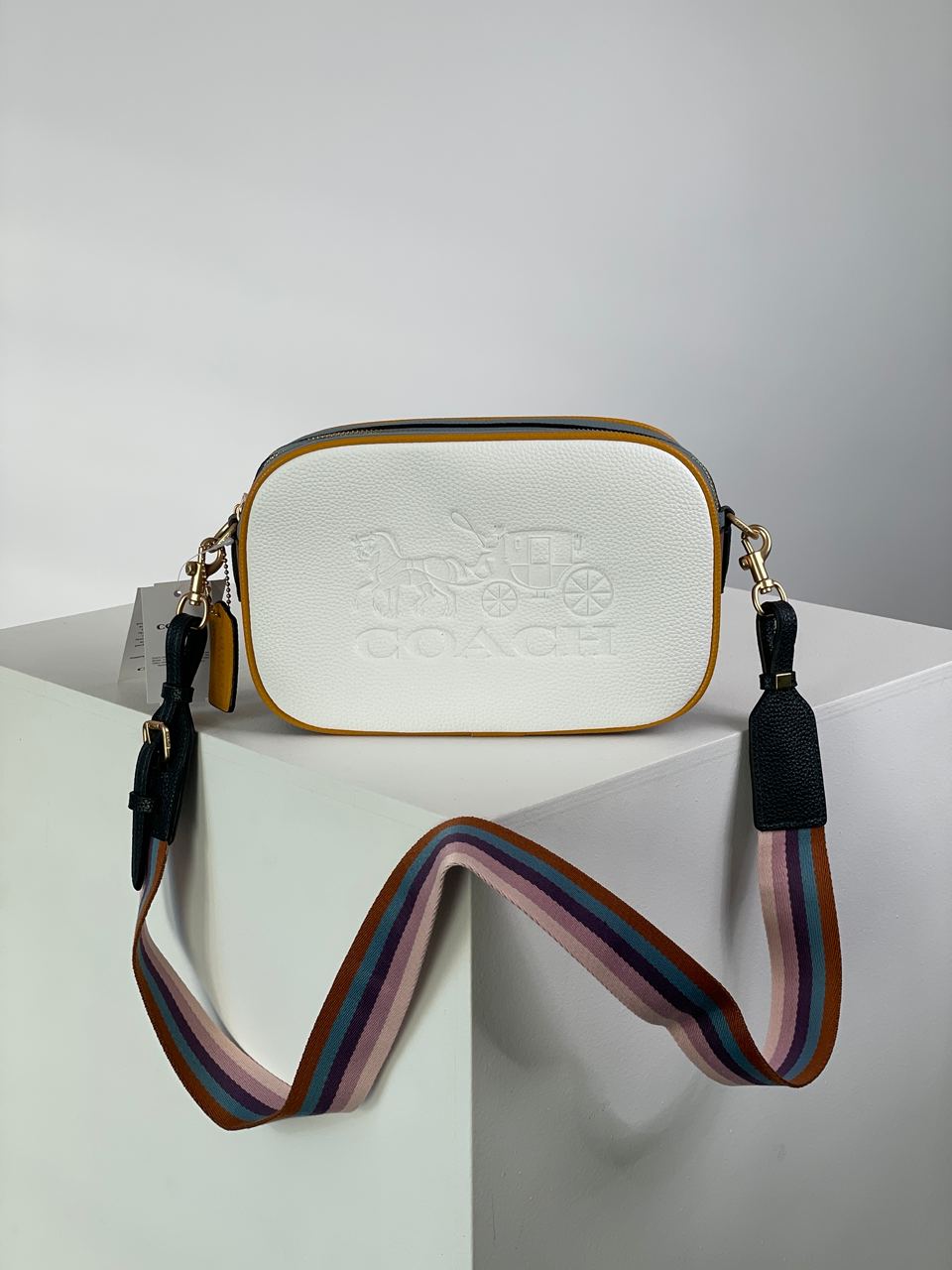 Розмір 25x16x9смСумка виготовлена з зернистої шкіри, має фірмове тиснення.Всередині два великих відділення, також є кишеня з шкіряною нашивкою.Підкладка у сумки з щільного коричневого текстилю.Зачиняються відділення на застібках.Фурнітура металева, має брендове маркування.Різнобарвний ремінець на карабінах виконаний з якісного текстилю, має регулюєму довжину.Комплектується у брендованій коробці та пильовику.
