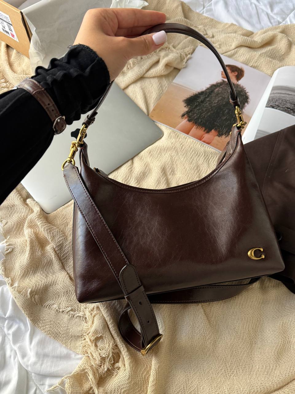 Розмір 25x15x9смМатеріал : шкіраОдин відділ, маленька кишеняЛого всередині, лого на фурнітуріВ комплекті: коробка, пильник, пакувальний папір