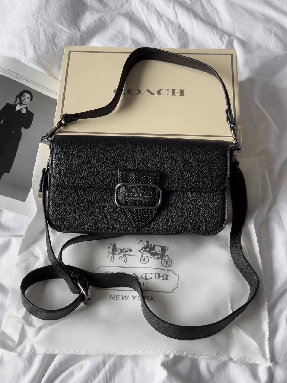 Розмір 26х14х7смМатеріал: шкіраДва відділи, кишеня Лого всередині, лого на фурнітуріПакування: магнітна коробка, пакувальний папір, пильник