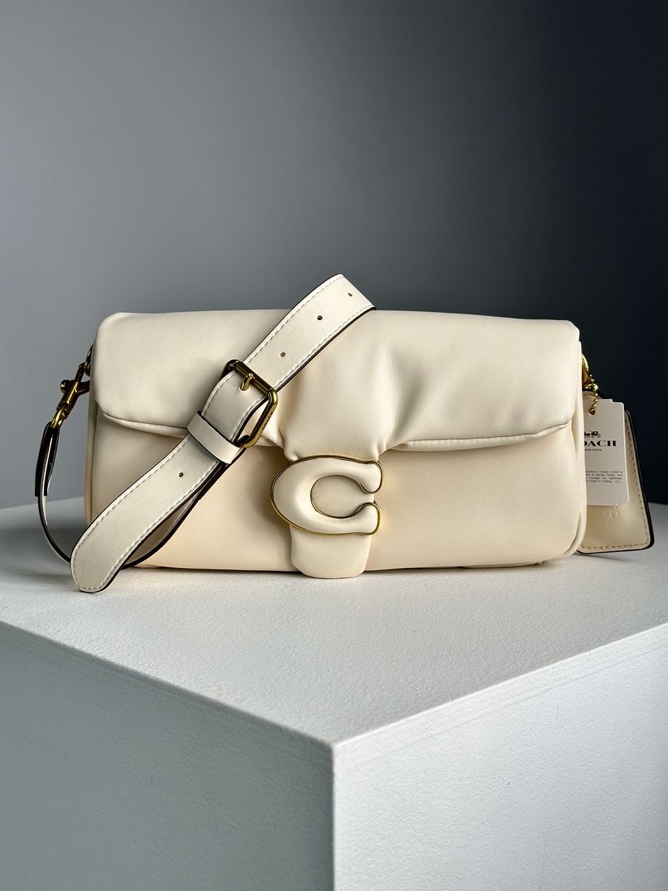 Розмір 26х14х8смСумка виготовлена з гладкої шкіри, дуже м’яка та приємна на дотик.Усередині три відділення, одне з яких на застібці.Підкладка всередині з гладкої шкіри, є шкіряна нашивка з брендовим тисненням.Якісна металева фурнітура, брендована.Має коротку шкіряну ручку для носіння у руці (фіксованої довжини) та довгий ремінець для носіння через плече (регулюємої довжни).Комплектується у брендованій коробці на магнітах та пильовику.