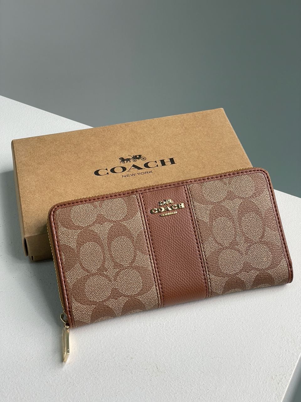 Розмір 20x10x3смГаманець виконаний з гладкої шкіри з фірмовою канвою.Всередині два великих відділення та одне на застібці для дрібниць.Підкладка з чорної шкіри.Також 8 відділень для карток.Металева фурнітура якісна та брендована.Комплектується у брендову коробку та пильовик.