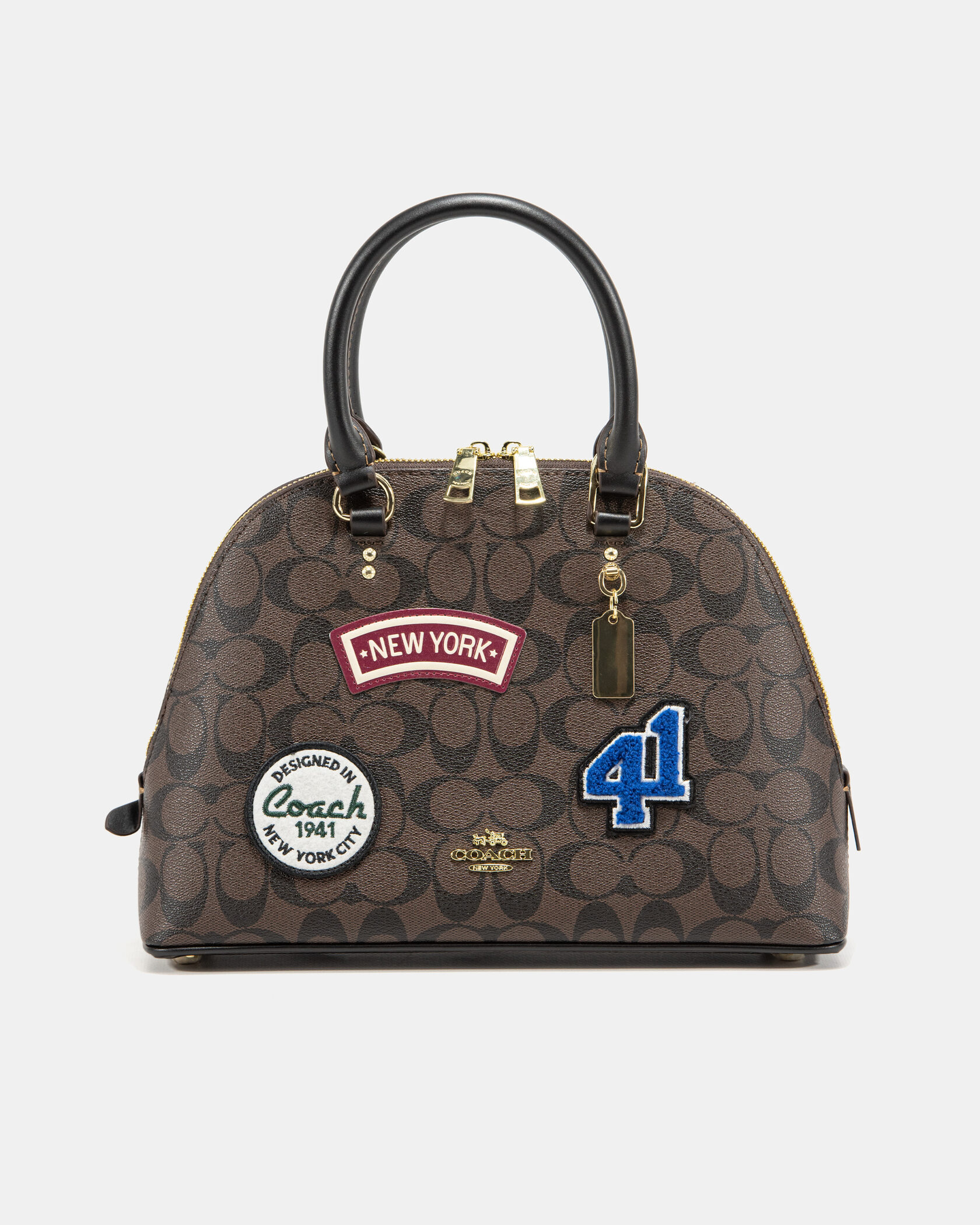 Розмір 30x23x10смМатеріал: ШкіраФурнітура: ЗолотаОсобливості: Стильна сумка з об’ємним куполоподібним дизайном, прикрашена патчами, ідеально доповнить сучасний образ.