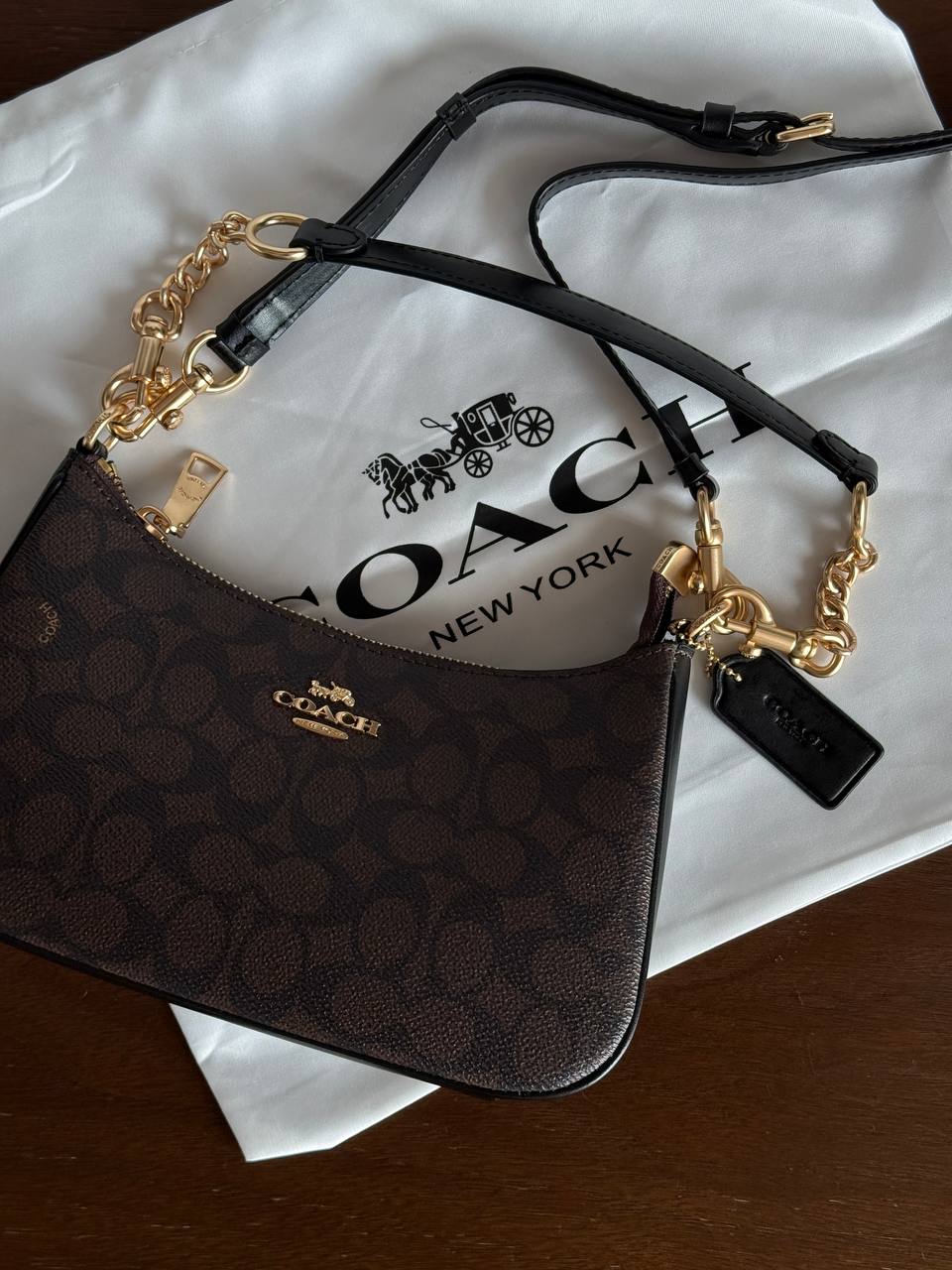 Розмір 24х14х6,5смМатеріал : шкіраЧотири відділиЛого всередині, лого на фурнітуріВ комплекті: Брендована коробка, пакувальний папір, печиво з передбаченням