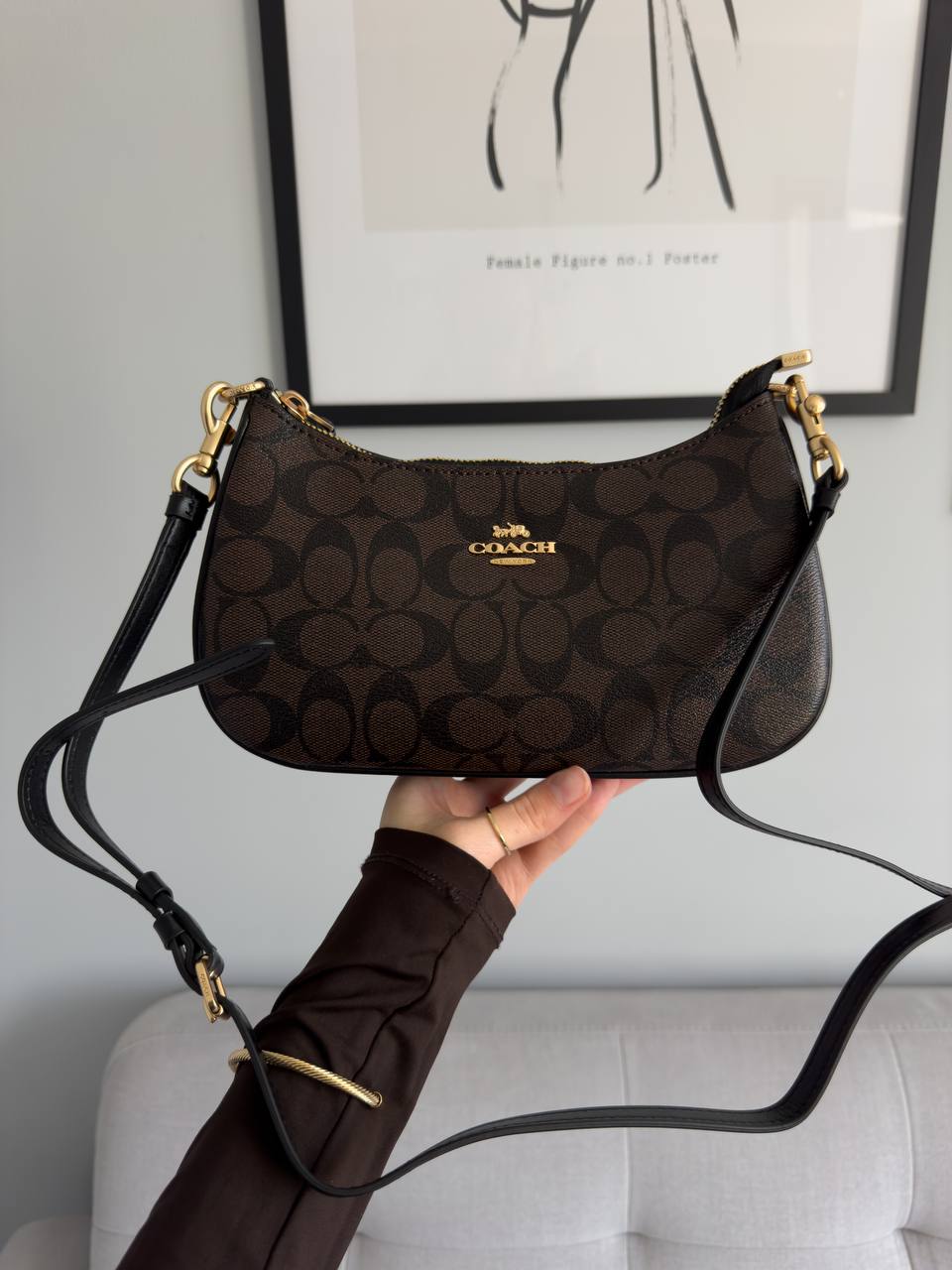 Розмір 24х14х6,5смМатеріал: шкіраОдин відділ + кишеняЛого всередині, лого на фурнітуріВ комплекті: довгий ремінецьПакування: брендована коробка, пакувальний папір, пильник