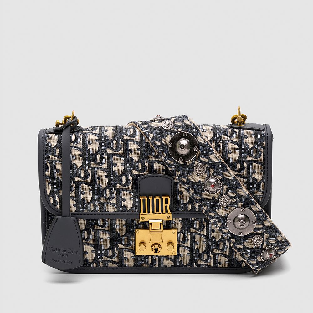 Розмір 24х15х7смСумка виготовлена з текстилю з фірмовою вишивкою.Всередині одне відділення, також є невеличка кишеня на застібці.Підкладка з щільного текстилю в кольорі неві блю, має шкіряну нашивку з брендуванням.Зачиняється відділення на фірмовому механізмі.Фурнітура металева, брендована.Ремінець для носіння через плече - текстильний, фіксованої довжини, на карабінах, має металеві елементи.Також має в комплекті ланцюжок з брендованими ланками.Комплектується в брендовій текстурній коробці на магнітах та пильовику, є буклети.