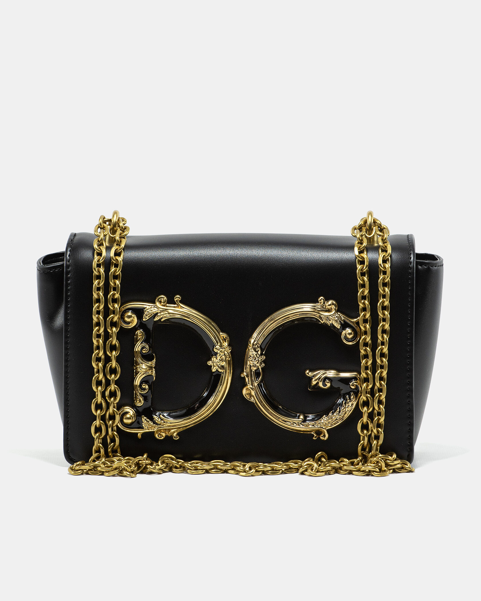 Розмір 20х12х4смМатеріал: Натуральна шкіраФурнітура: ЗолотаРучки: Металевий ланцюжок через плечеВідділення: Основне відділення з клапаном на магнітіОсобливість: Розкішна сумка з культовим логотипом DG — яскравий акцент, що додає образу розкоші та впевненості