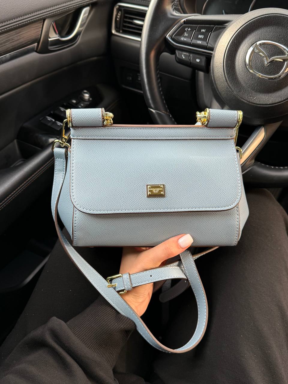 Dolce & Gabbana Sicily Mini Textured-Leather Shoulder Bag in Light Blue