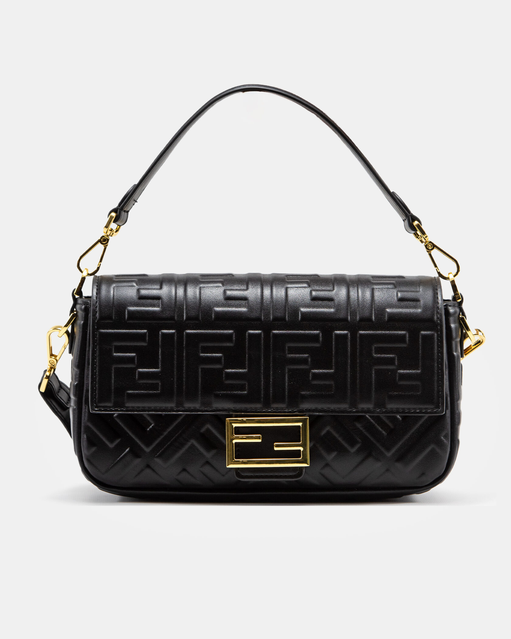 Розмір 26х16x6смМатеріал: ШкіраФурнітура: Золотистого кольоруРемінець: Коротка ручка + знімний регульований плечовий ремінецьЗакриття: Магнітна застібка з металевою пряжкою "FF"Відділення: Основне відділення + внутрішня кишеня на блискавціСтиль: Преміальний, класичний, елегантний