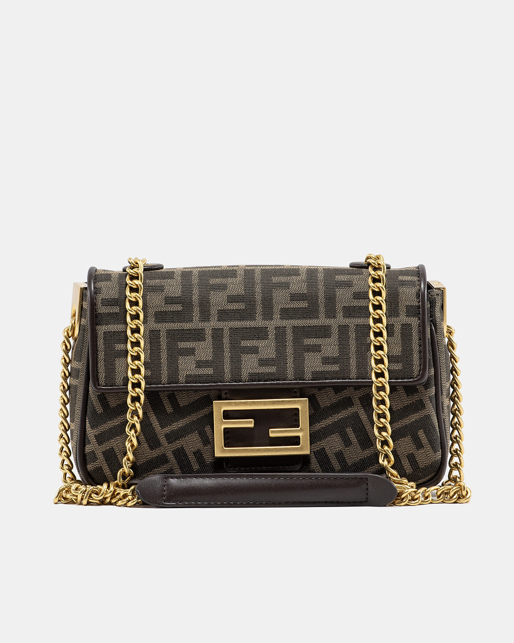 Розміри 22x12x6смМатеріал: ШкіраФурнітура: ЗолотаОсобливості: Компактна сумка на плече з фірмовим монограмним принтом Fendi. Ланцюжок із золотистим блиском додає вишуканості. Ідеально підходить як для вечірніх виходів, так і для повсякденного образу з акцентом.