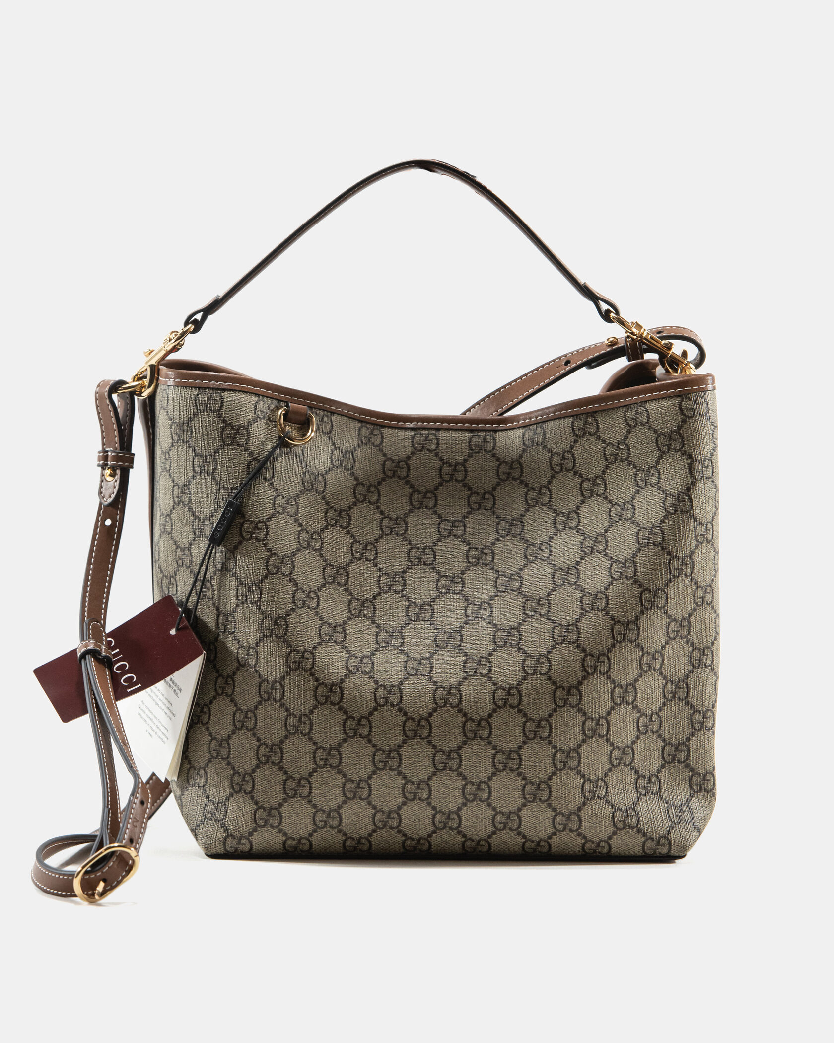 Розмір 26x26x16смМатеріал: Натуральна шкіра + фірмовий GG канвасФурнітура: Золота, брендові металеві елементиРучки: Коротка верхня + довгий ремінець через плечеВідділення: Основне відділення на кнопціОсобливість: Легка, стильна та зручна модель із культовим GG-принтом — ідеальний баланс елегантності та практичності