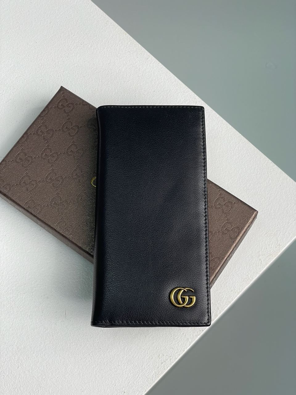 Розмір 20х10x3смГаманець виконаний з гладкої шкіри.На лицьовій стороні є невеличке металеве фірмове лого.Всередині три відділення для готівки.Підкладка шкіряна, чорного кольору.Також 12 відділень для карток.Комплектується у брендову коробку та пильовик.