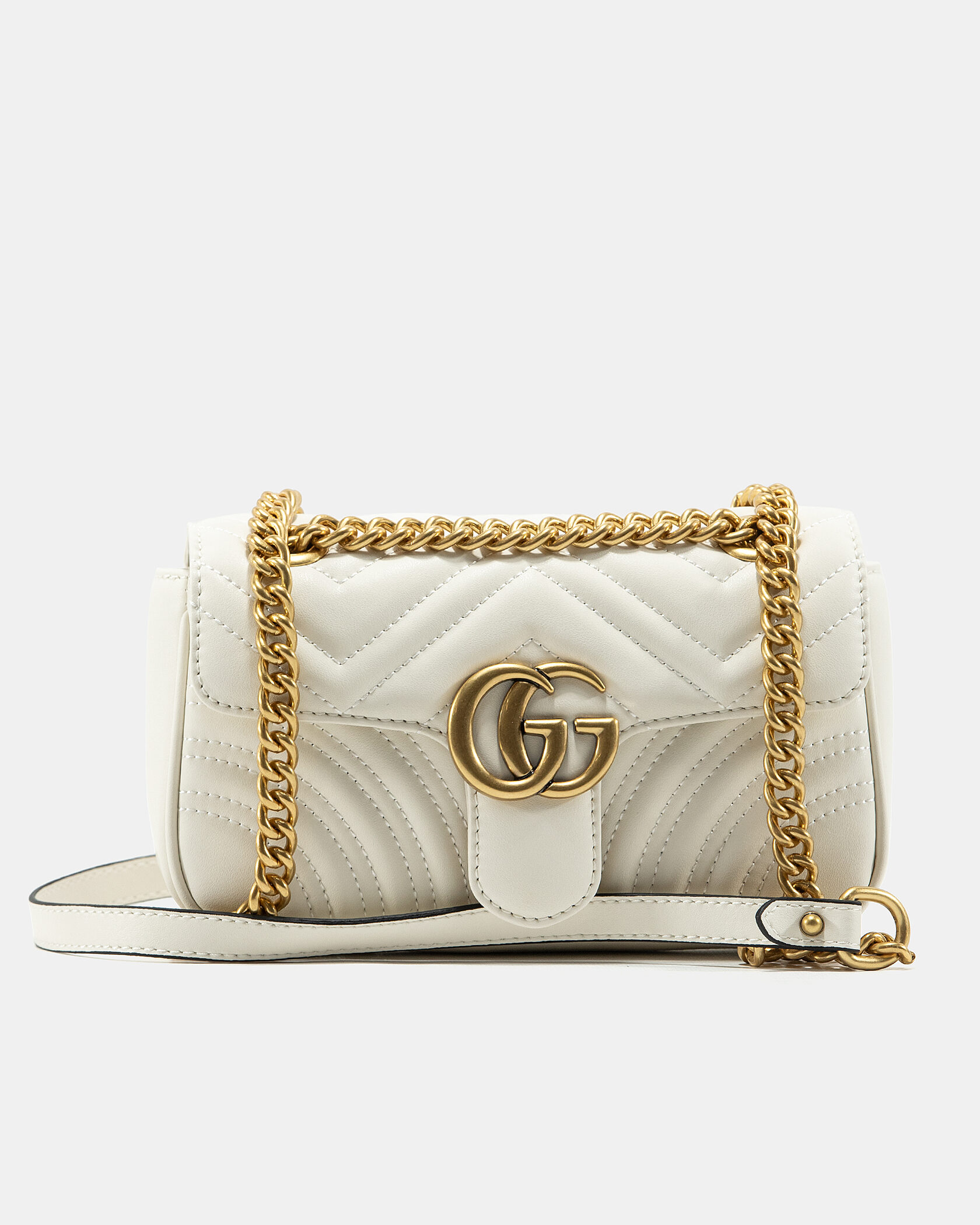 Розмір 22x13x7смМатеріал: Натуральна шкіра з простібкоюФурнітура: ЗолотаЛоготип: Металеве GG на клапаніЛанцюжок: Золота металева ручка-ланцюгВідділення: Основне + внутрішня кишеняЗакриття: Клапан на магнітній застібціСтиль: Легка та вишукана модель у світлому кольорі — для денного шику, святкових образів або романтичних вечорів
