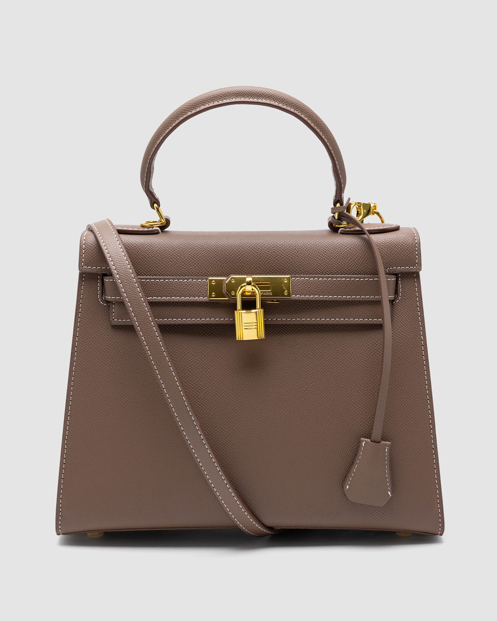 Розмір 26х21х11смСумка виготовлена з тисненої шкіри.Всередині одне відділення, також є кишеня на застібці.Підкладка у сумки з бежевої шкіри.Зачиняється завдяки фірмовому механізму з ременями та замочком.Фурнітура металева, брендована.Має ручку для носіння у руці та ремінець з регулюємою довжиною для носіння через плече.Комплектується в брендовій коробці та пильовику, також в комплекті є конячка.