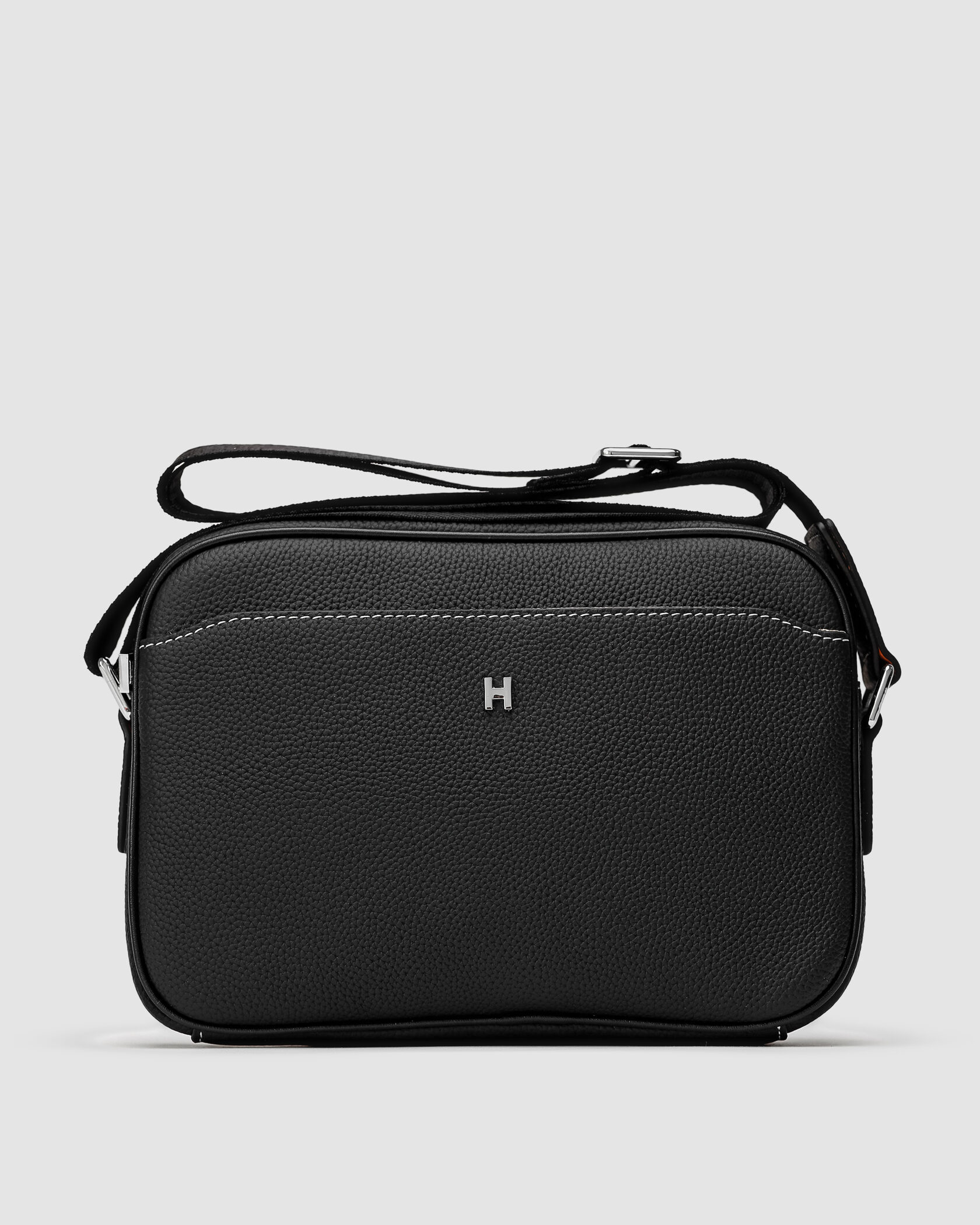 Розмір 25х18х6.5смСумка виготовлена з зернистої шкіри.Всередині одне велике відділення, також є кишеня на застібці з фірмовою нашивкою.Попереду також є кишеня, на магніті-клапані, а позаду - на застібці.Підкладка з щільного та приємного на дотик текстилю.Фурнітура дуже якісна, металева та брендована.Ремінець текстильний, має можливість регулювання за довжиною.Комплектується в брендову коробку та пильовик.
