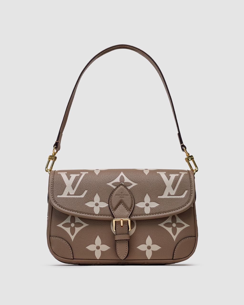 Розмір 25х16х9смСумка виготовлена з зернистої шкіри з фірмовим тисненням (з великою канвою).Всередині одне велике відділення, та менше на застібці.Зачиняється сумка на магніті-клапані (ремінець є бутафорією).Підкладка всередині текстильна, приємна на дотик.В комплекті є коротший шкіряний ремінець та більш довгий текстильний з фіксованою довжиноюКомплектується у брендовій коробці та пильовику, є буклетики.