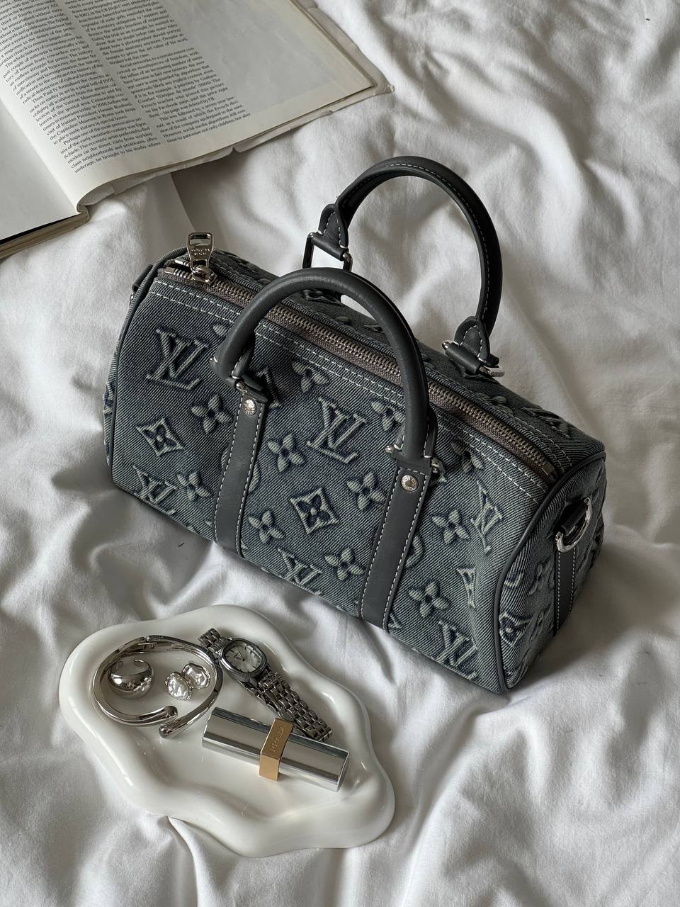 Розмір 18х13х10смМатеріал : денім, шкіраОдин відділЛого всередині, лого на фурнітуріВ комплекті: магнітна коробка, пильник, пакувальний папір