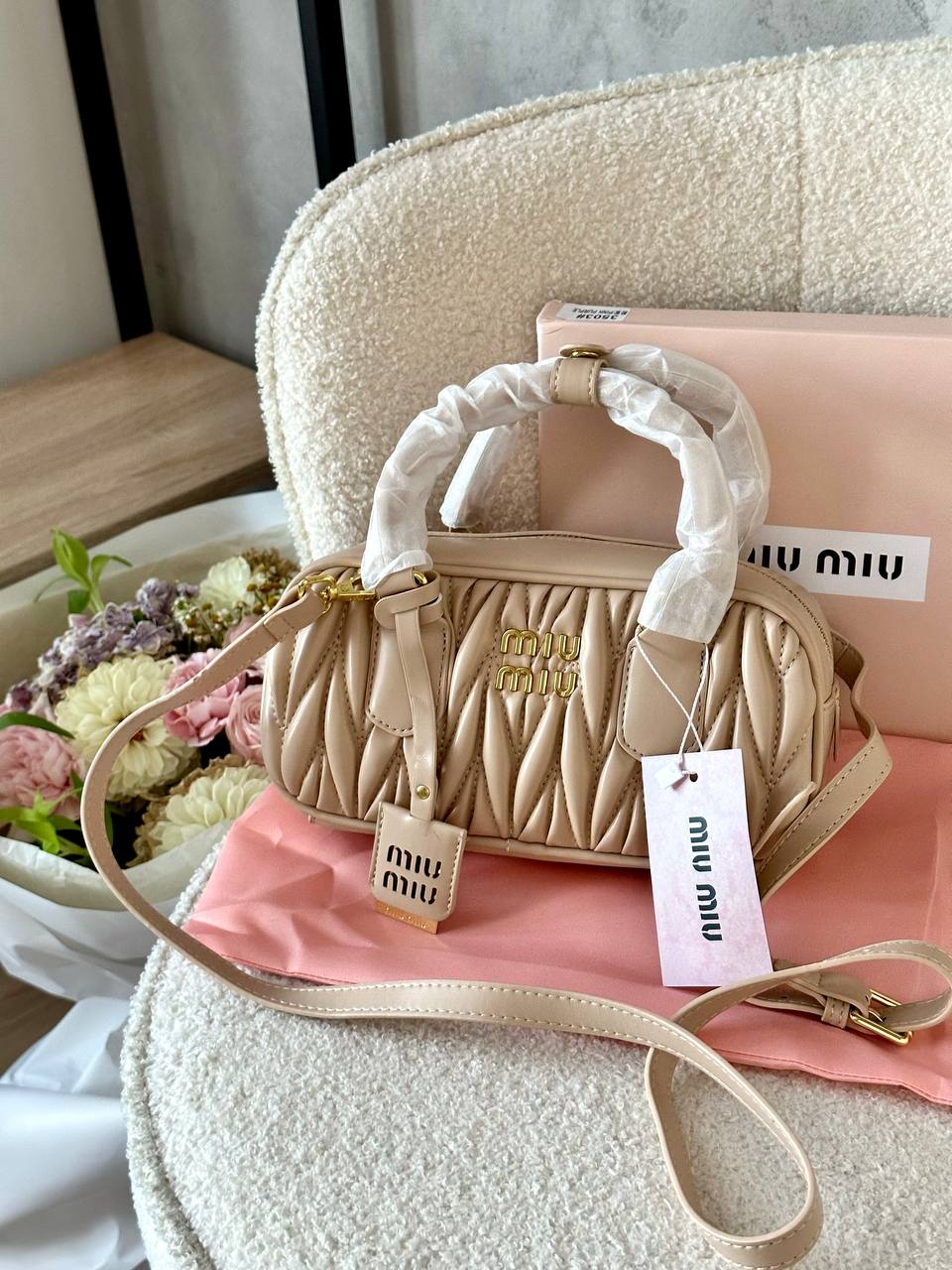Розмір 22х12х7 смМатеріал: натуральна шкіра, всередині текстильний підкладОдин відділ, маленька кишеняМеталеве лого всередині Довгий ремінець 95 см максимальна довжина (регулюється)В комплекті: оригінальна коробка miu miu, пакувальний папір, пильник фірмовий