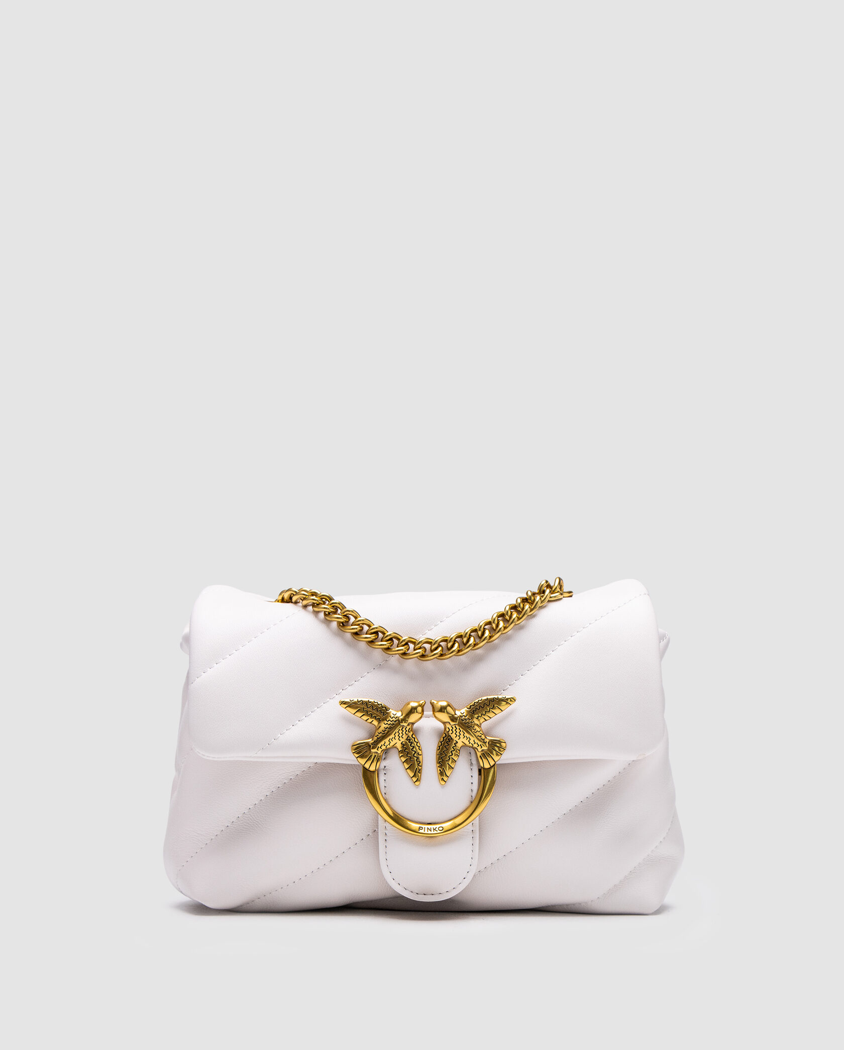 Pinko Love Click Classic Crossbody Bag in Quilted Leathe White