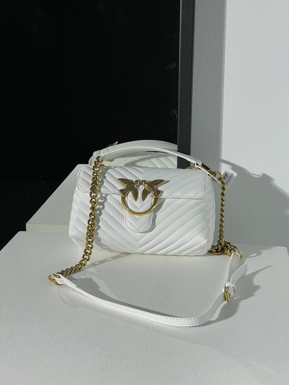Pinko Love Click Classic Crossbody Bag in Quilted Leathe White