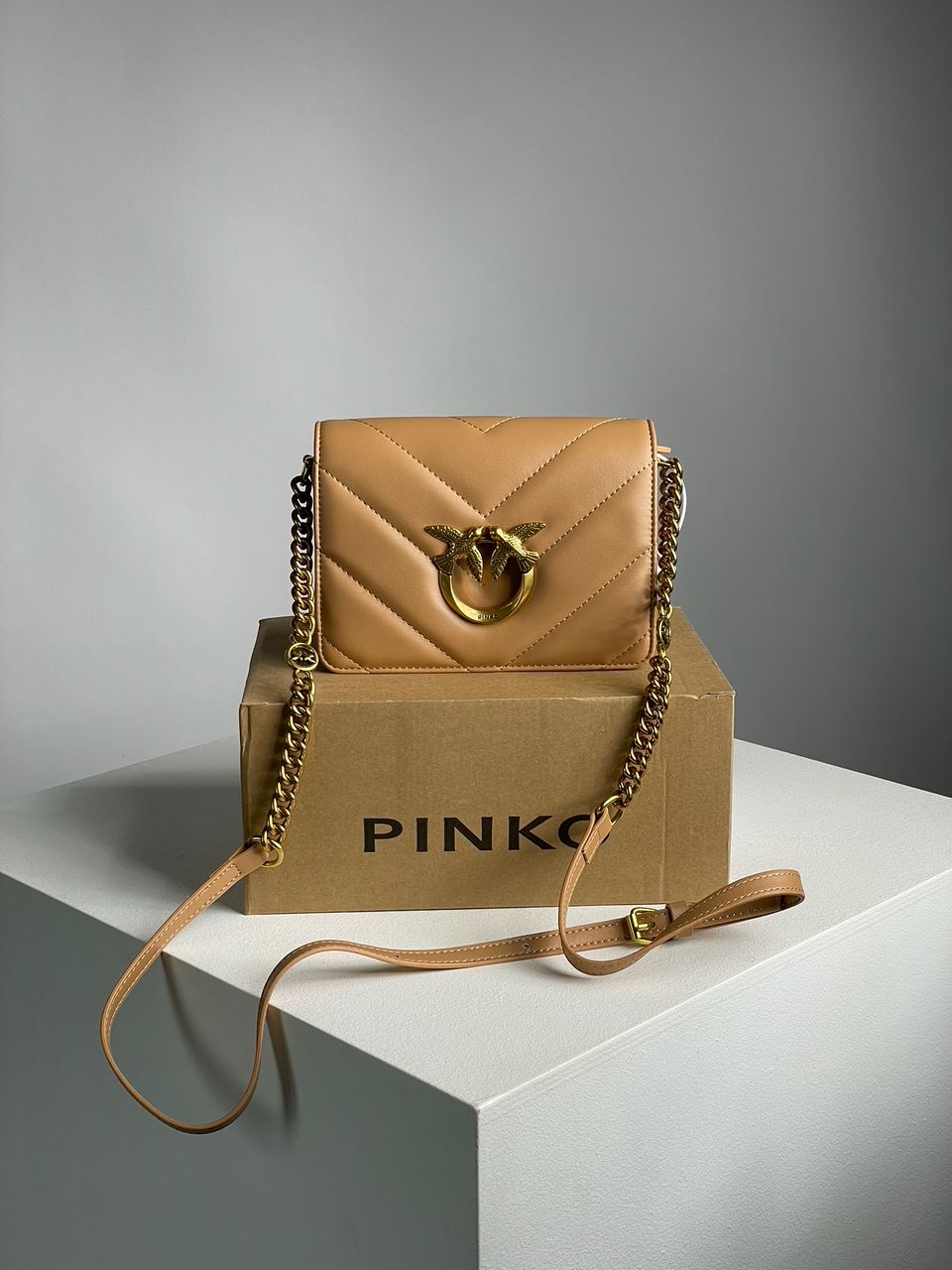 Pinko Love Click Classic Crossbody Bag in Quilted Leathe White