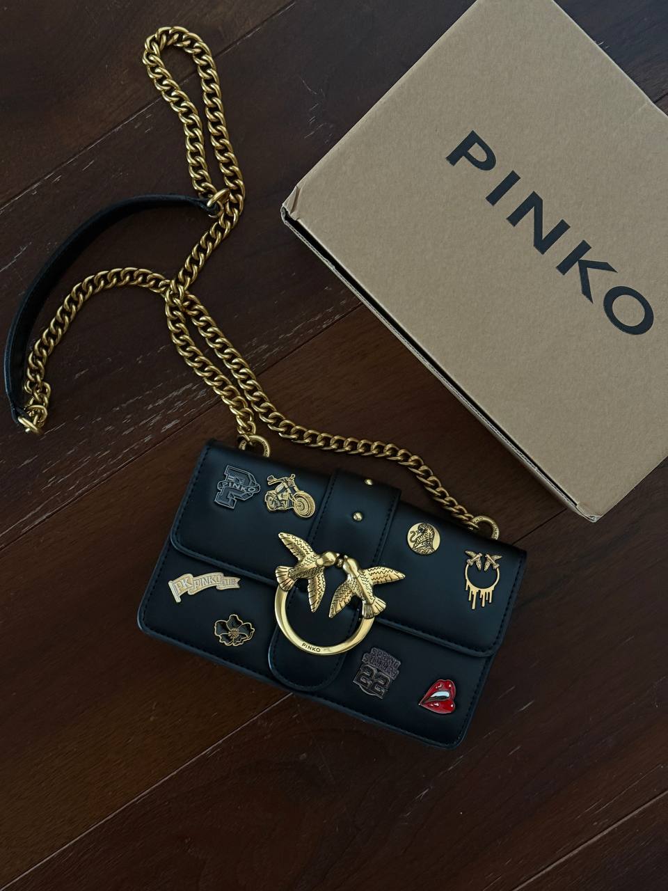 Pinko Love Click Classic Crossbody Bag in Quilted Leathe White