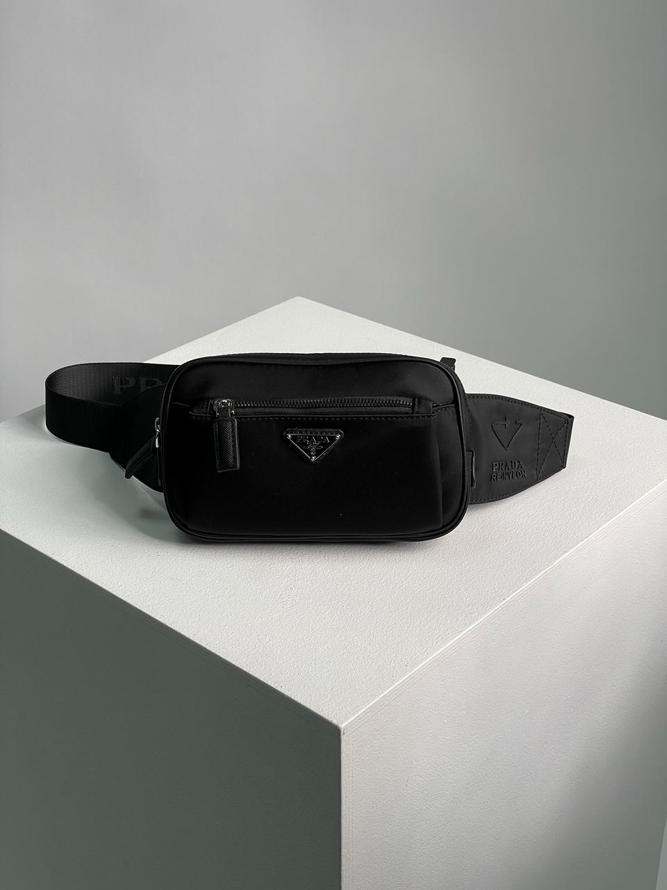 Розмір 21х13х6смБананка виконана з чорного нейлону.Має одне велике відділення та кишеню попереду, обидва на застібках.Всередині підкладка з брендового текстилю, э відділення на застібці.Фурнітура дуже якісна, металева та брендована.Ремінець текстильний, чорного кольору, має регулюєму довжину.Комплектується в брендову коробку та пильовик.
