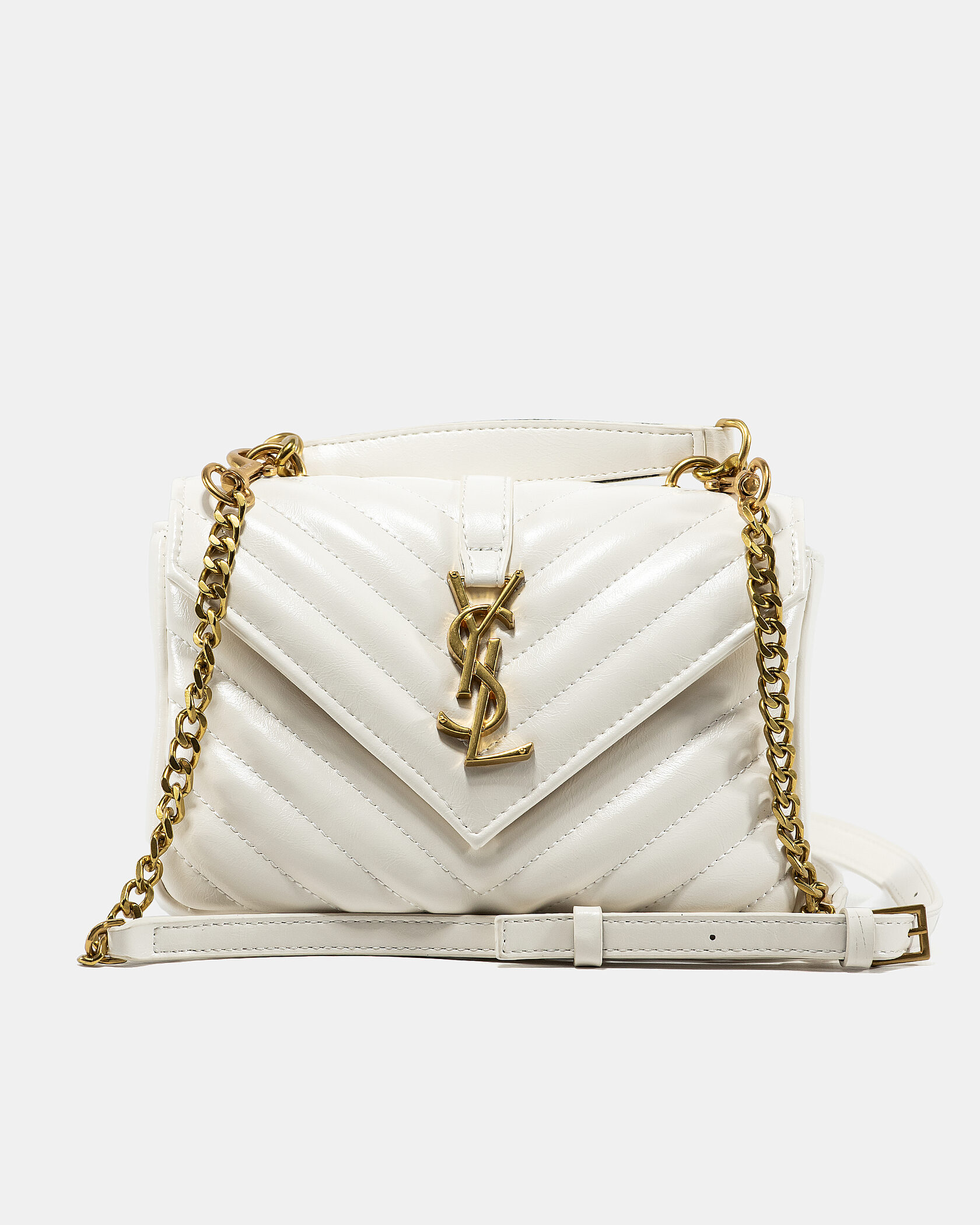 Saint Laurent College Small Top Handle Bag in White Matelassé Leather