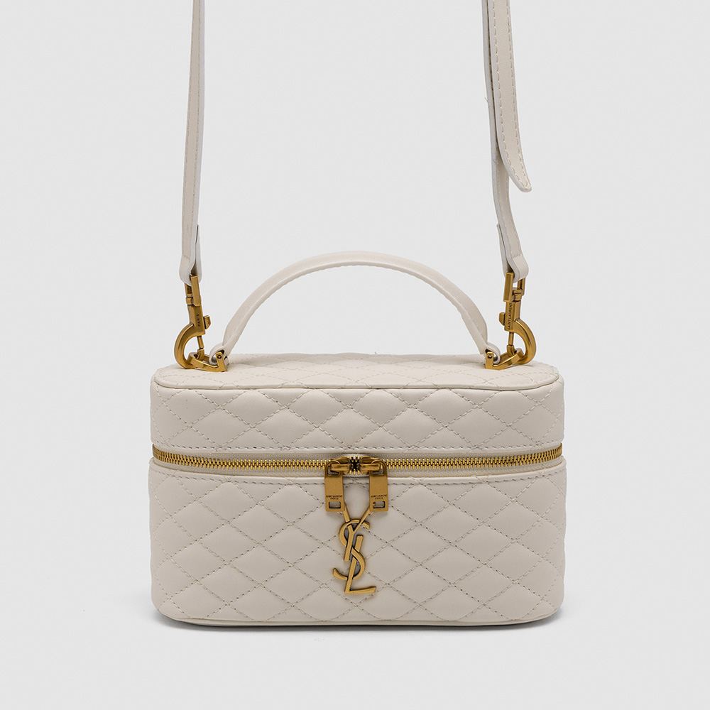 Розмір 18х10.5х6.5смСумка виготовлена з гладкої шкіри, має ромбоподібне прострочення.Всередині одне велике відділення, є невеличка кишеня з фірмовим тисненням.Підкладка з гладкої шкіри в колір сумочки.Зачиняється відділення на застібці.Фурнітура металева та брендована.Ремінець шкіряний, на карабінах, має регулюєму довжину.Комплектується у брендовій коробці на магнітах та пильовику, є буклети.