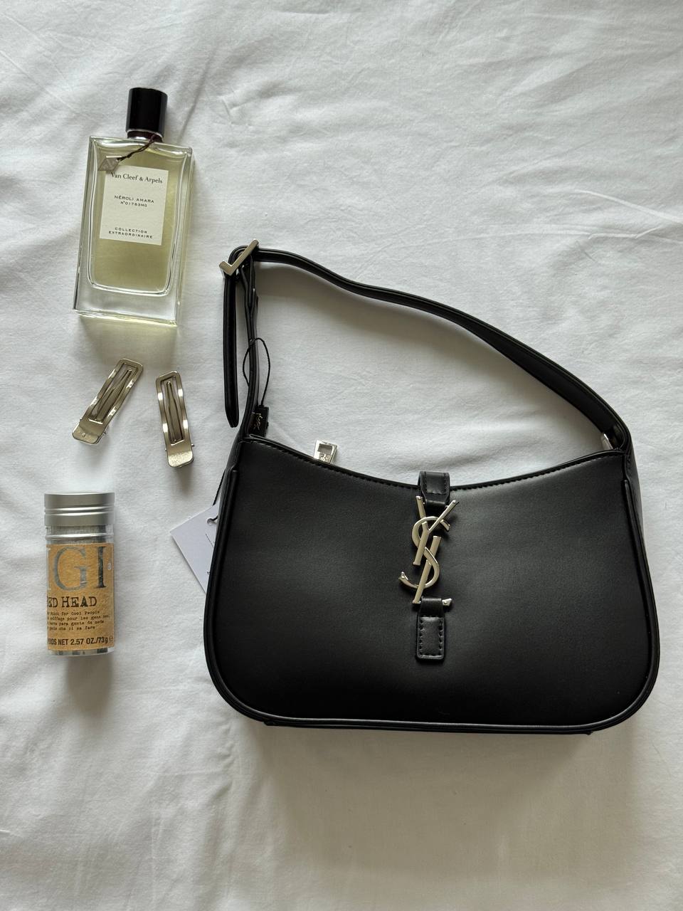 Saint Laurent Hobo Le 5 A 7 Leather Shoulder Bag in Black/Silver