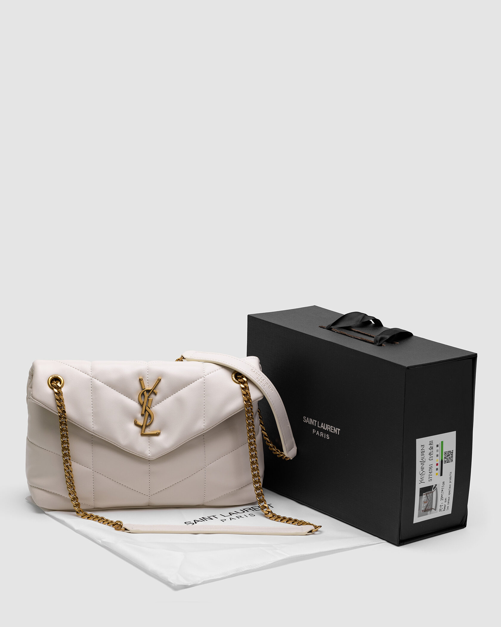 Saint Laurent Puffer Small in Nappa Leather Cream Gold Chain